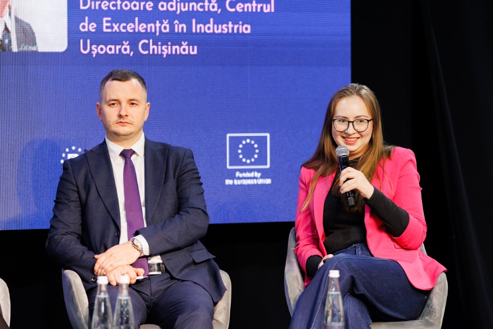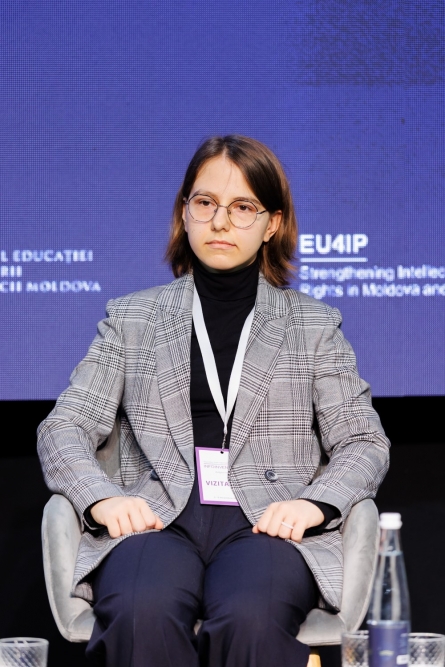 Un moment inspirațional al evenimentului a fost intervenția Oxanei Zaporoniuc, studentă la Universitatea Tehnică a Moldovei și Ambasadoare a Proprietății Intelectuale pentru Tineri în Republica Moldova, desemnată de OMPI pentru a promova cultura proprietății intelectuale în rândul noii generații. Ea a împărtășit povestea parcursului său – de la primele proiecte creative până la recunoașterea internațională – evidențiind rolul drepturilor de proprietate intelectuală în sprijinirea tinerilor inovatori și a creativității autentice.