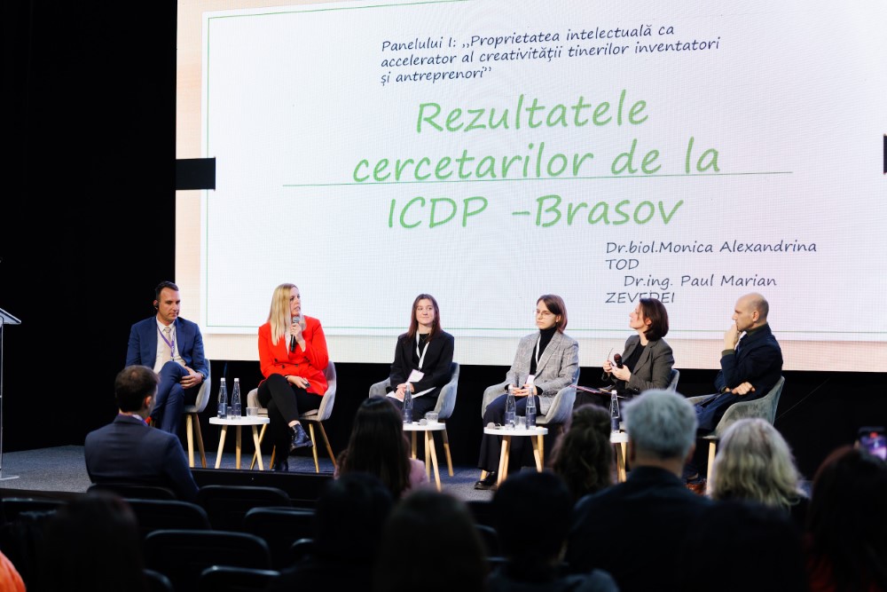 Primul panel al conferinței, cu tema „Proprietatea intelectuală ca accelerator al creativității tinerilor inventatori și antreprenori”, a explorat modul în care proprietatea intelectuală poate sprijini inițiativele tinere, transformând ideile inovatoare în proiecte de succes. Discuțiile au pus accent pe exemple de bune practici, mecanisme de sprijin și perspective de dezvoltare pentru tinerii care aspiră să devină inventatori și antreprenori. Un moment deosebit l-a constituit prezentarea Echipei „Răchițele”, care a împărtășit povestea “colinelor țesute” – un concept creativ inspirat din tradiție și reinterpretat în cheie modernă. Echipa a venit la conferință împreună cu mentorul lor, designerul Mihai Stamati, oferind participanților o perspectivă autentică asupra procesului de creație și protecției prin PI.