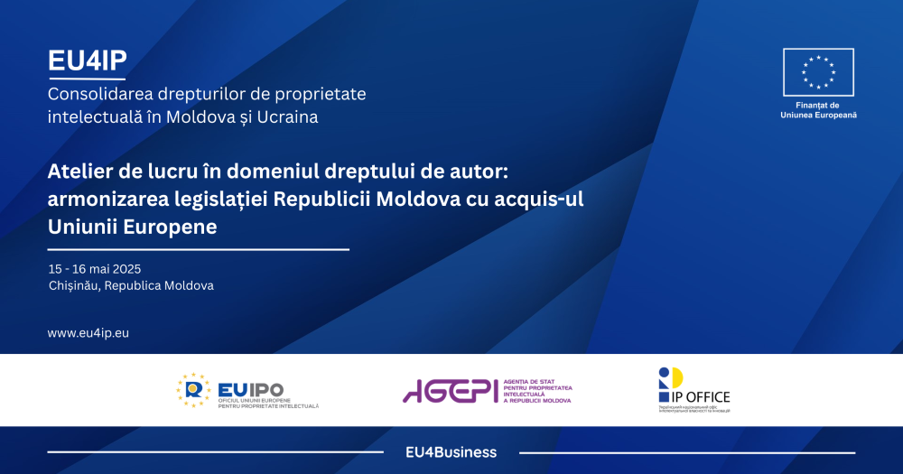 Oficiul Uniunii Europene pentru Proprietate Intelectuală (EUIPO) și Agenția de Stat pentru Proprietatea Intelectuală din Republica Moldova (AGEPI), în strânsă coordonare cu Direcția Generală Vecinătate și Negocieri privind Extinderea (DG NEAR) a Comisiei Europene anunță organizarea Atelierului de lucru în domeniul dreptului de autor: armonizarea legislației Republicii Moldova cu acquis-ul Uniunii Europene.