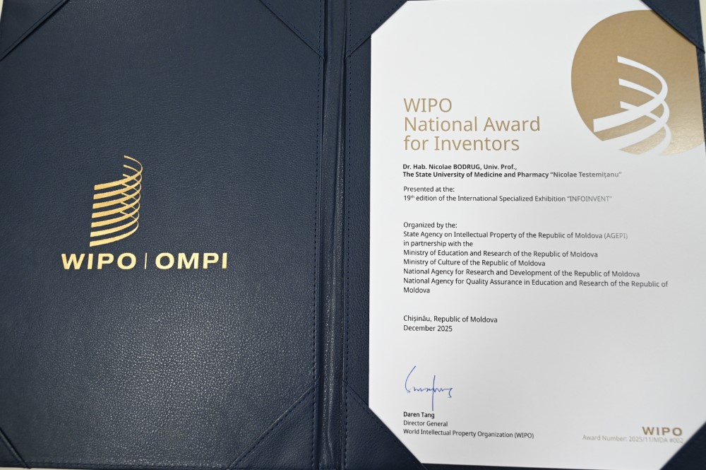 Premiul Național al OMPI pentru întreprinderi a fost acordat Universității de Stat de Medicină și Farmacie „Nicolae Testemițanu”, pentru aportul substanțial la dezvoltarea cercetării medicale, valorificarea rezultatelor științifice și transferul tehnologiilor cu aplicabilitate directă în practica clinică.